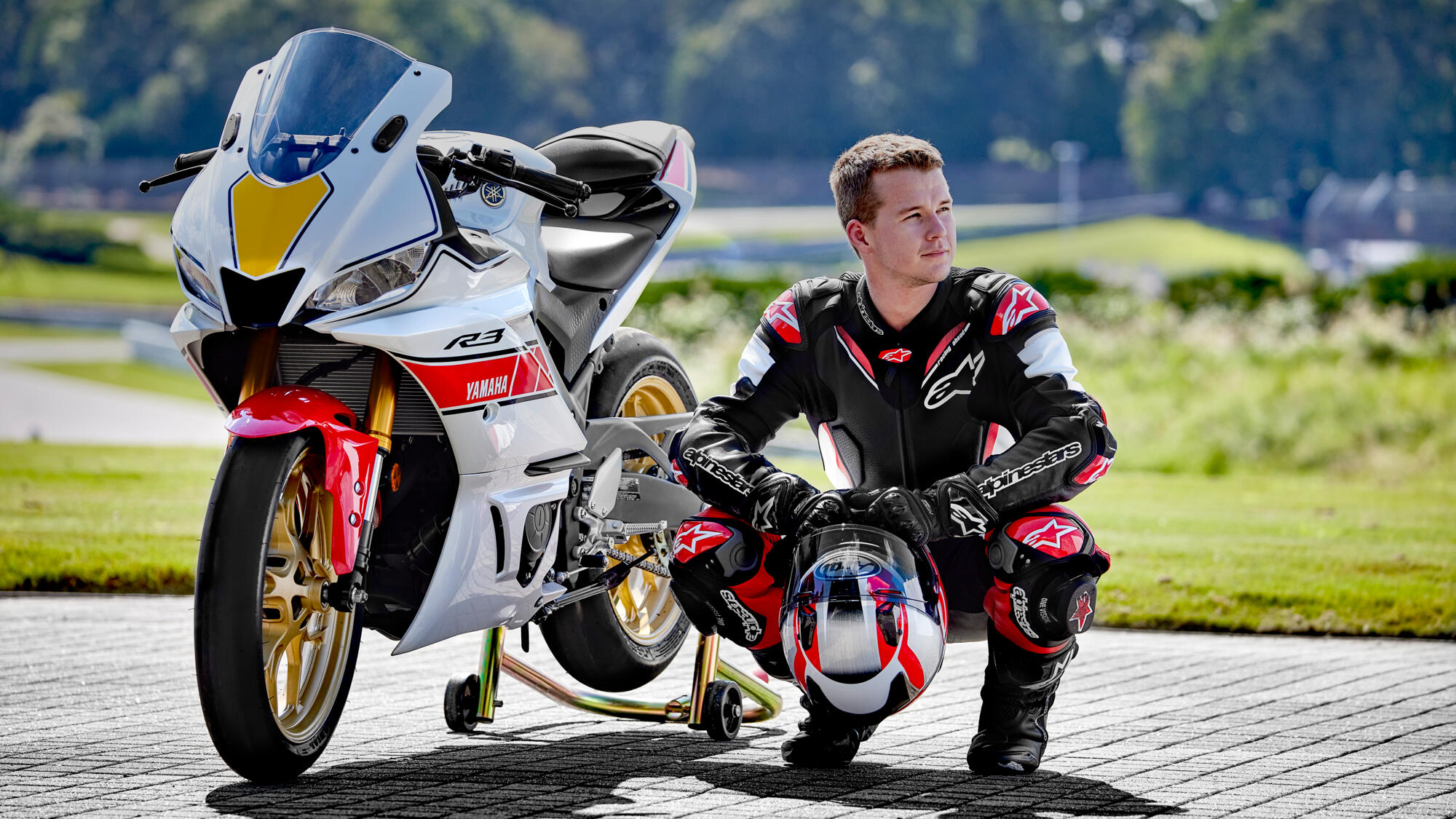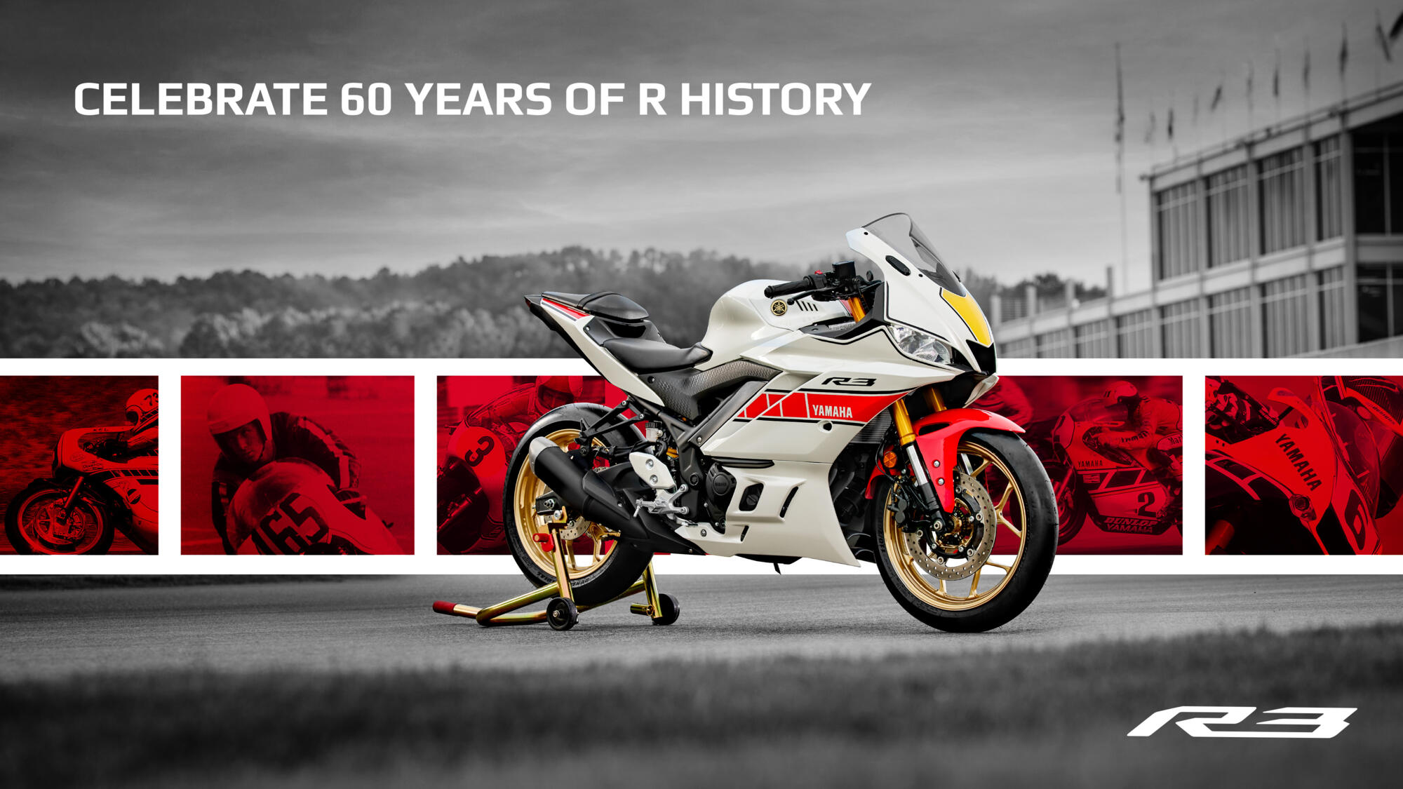 Med dynamiska racingfärger inspirerade av Yamahas historiska GP-motorcyklar tar den exklusiva R3 World GP 60th Anniversary nu R/World till nästa nivå genom den legendariska, racinginriktade stilen.